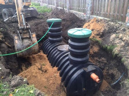 - Монтаж переливов: установка труб на 10 см ниже трубы, через которую стоки поступают в резервуар.